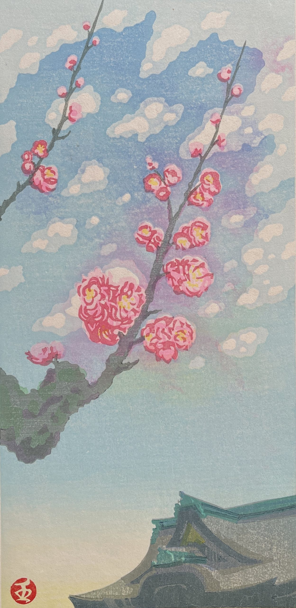 One of Junichi Mibugawa’s strongest point is his ability to capture the nuances of light, especially apparent in the prints where he shows trees casting their shadows. This extends to being able to capture the differences in light between the various seasons, as for example shown in his print Sunlight in Winter, that could not depict any other season.