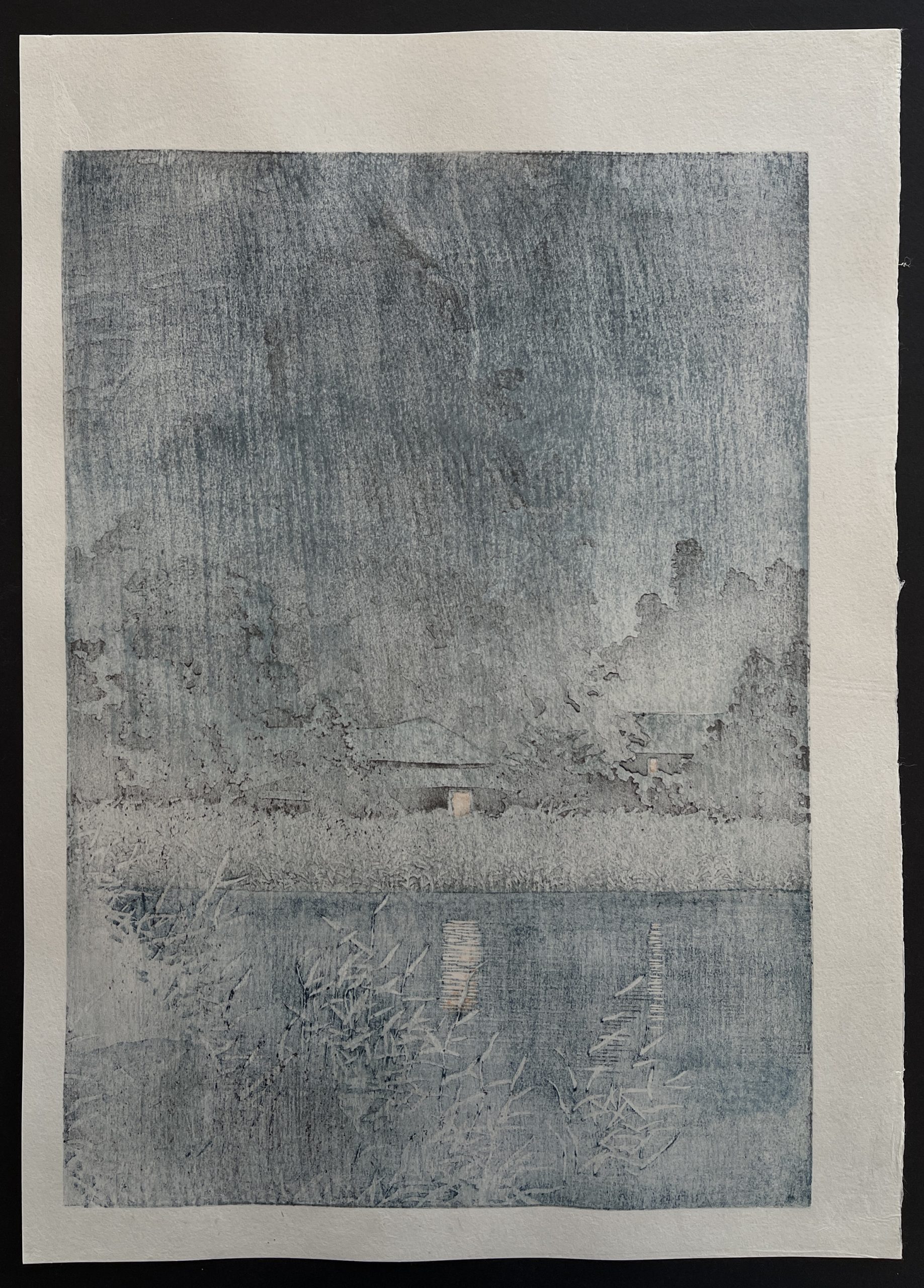 This Kawase Hasui print is part of a group of designs he first made around 1930 for the publisher cooperation Sakai-Kawaguchi. The woodblocks were destroyed during the war however, and after the war the rights for the design were transferred to publisher Shobisha, who has republished the designs from the 1950s onward with newly carved blocks. Kawase Hasui was involved in this process and the prints are originals, but the listing of the date of the first edition could be debated. Within the woodblock print community the years of the initial designs are used and that is followed here.