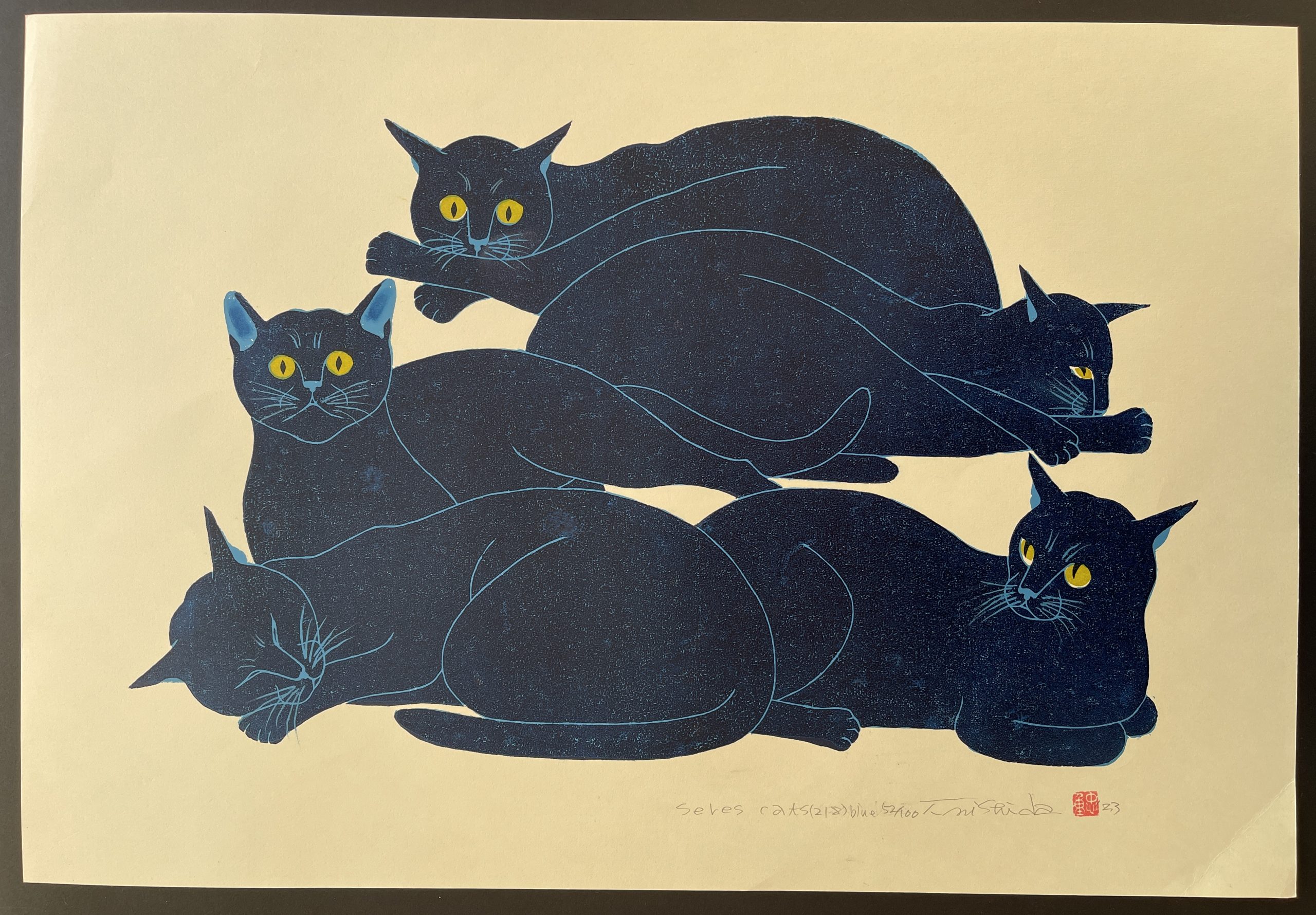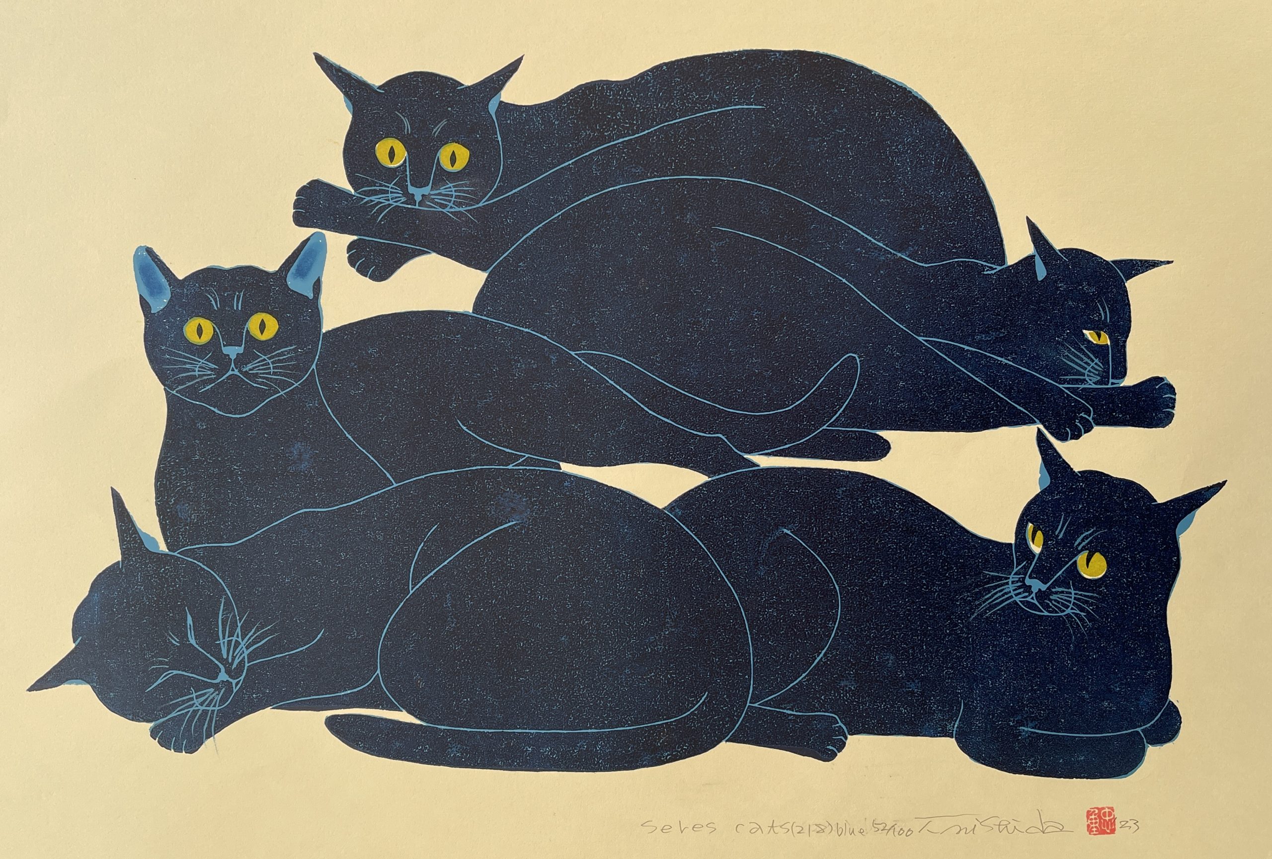 Nishida Tadashige (b 1942) – Cat Series (218) Blue