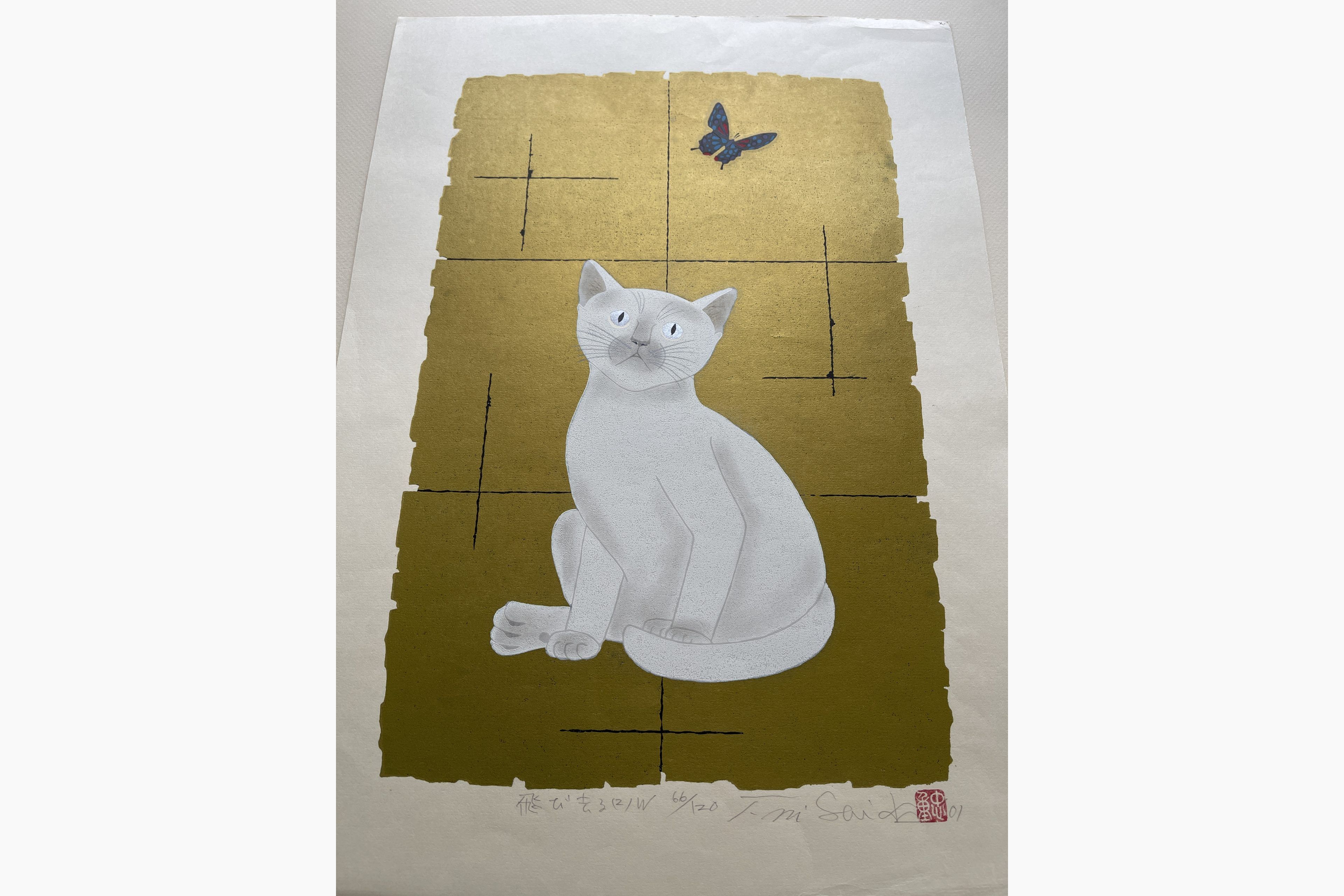Nishida Tadashige (b. 1942) is a famous Japanese woodblock print artist. His cat prints is what he is best known for, of which you can find many below. These are all high quality woodblock prints, hand-signed by the artist in limited editions. Though subjective, the cat prints are often considered remarkable in the way they succeed in conveying the different moods and characters of the cats shown.