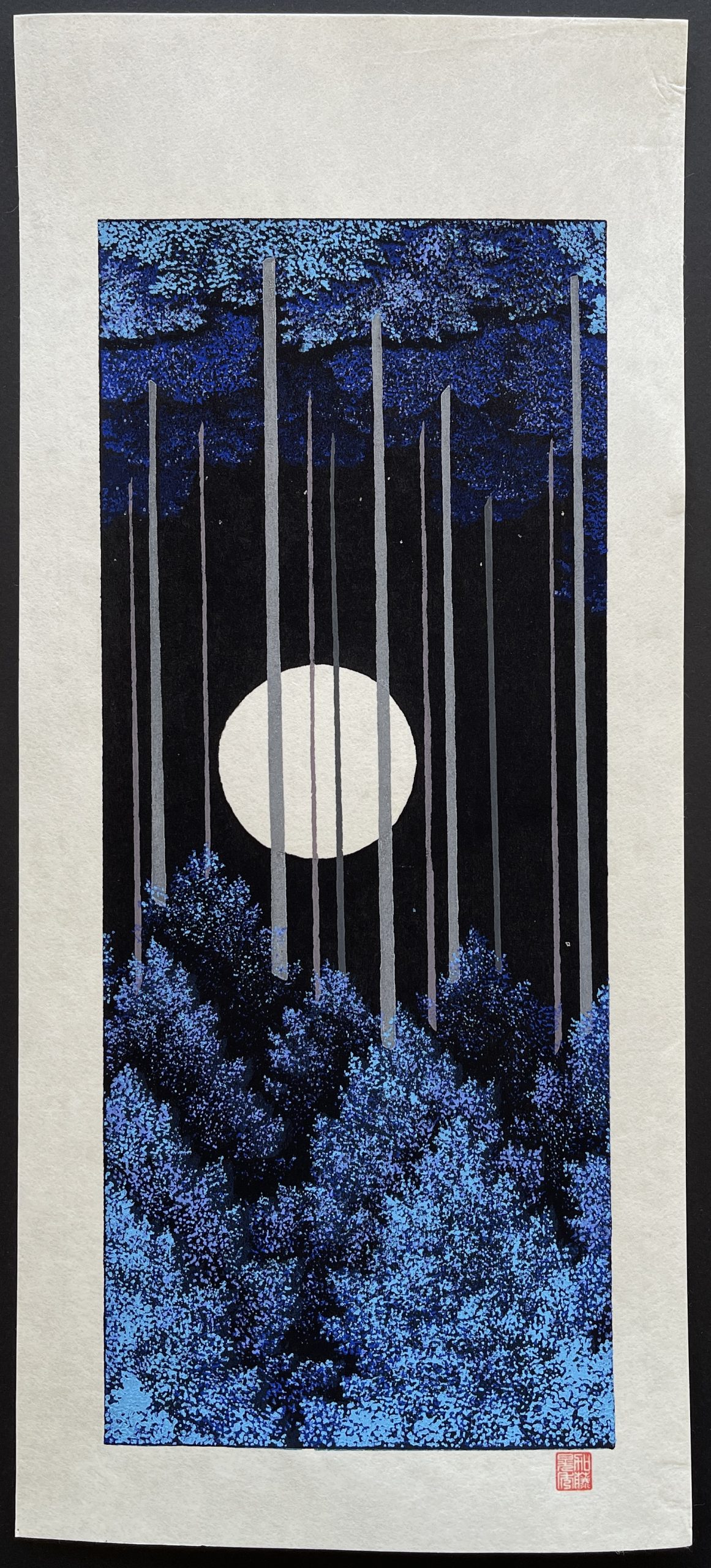 Nipponprints has a wide range of his prints. Many of these depict famous places in or around Kyoto. Examples are the 1,000 Torii at Kyoto’s Fushima Inari Shrine, Kinkaku-Ji, Kiyomizu-dera and Yasaka Shrine. Often these are combined with elements of nature, such as the full moon, bamboo, autumn leaves or cherry blossoms. In all, the innovative style of Teruhide Kato is unmistakable.