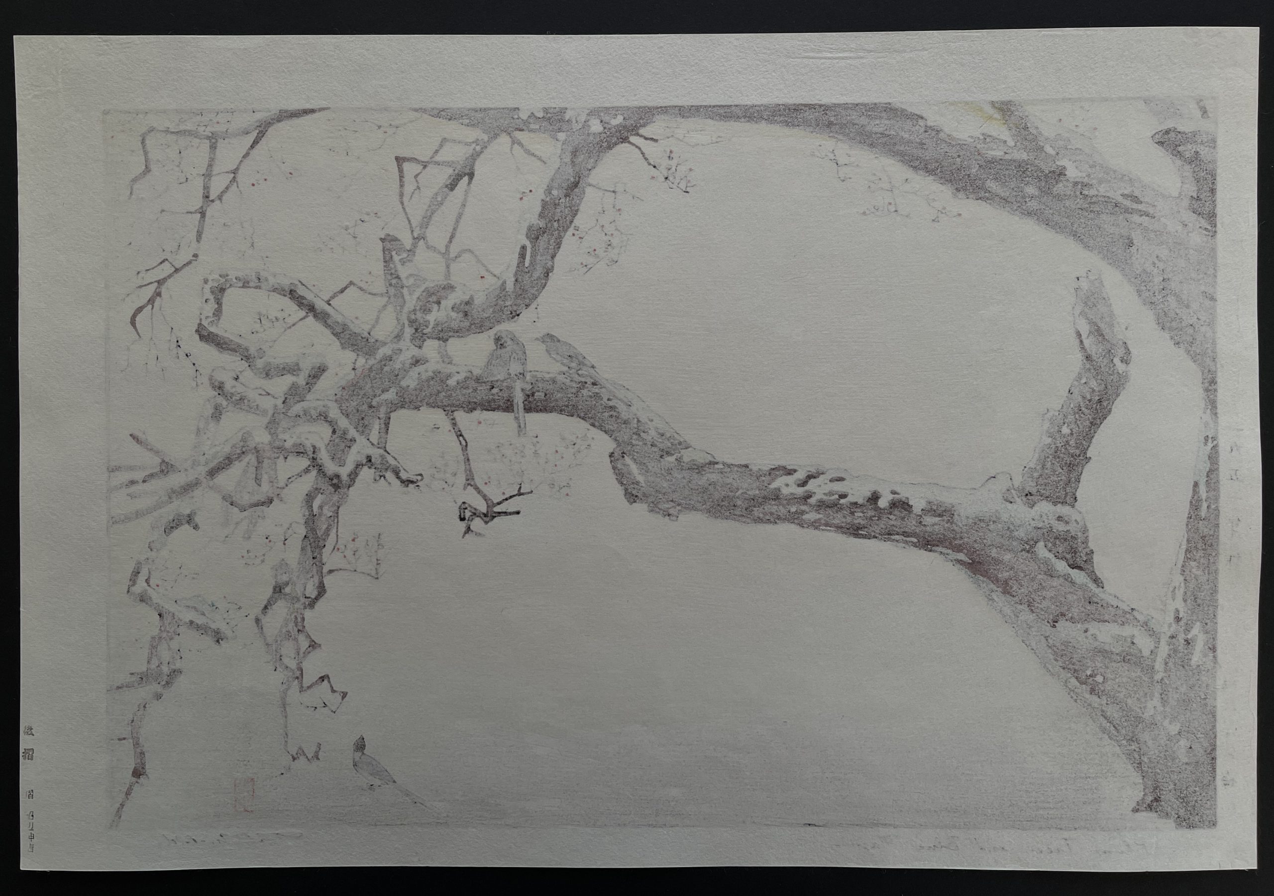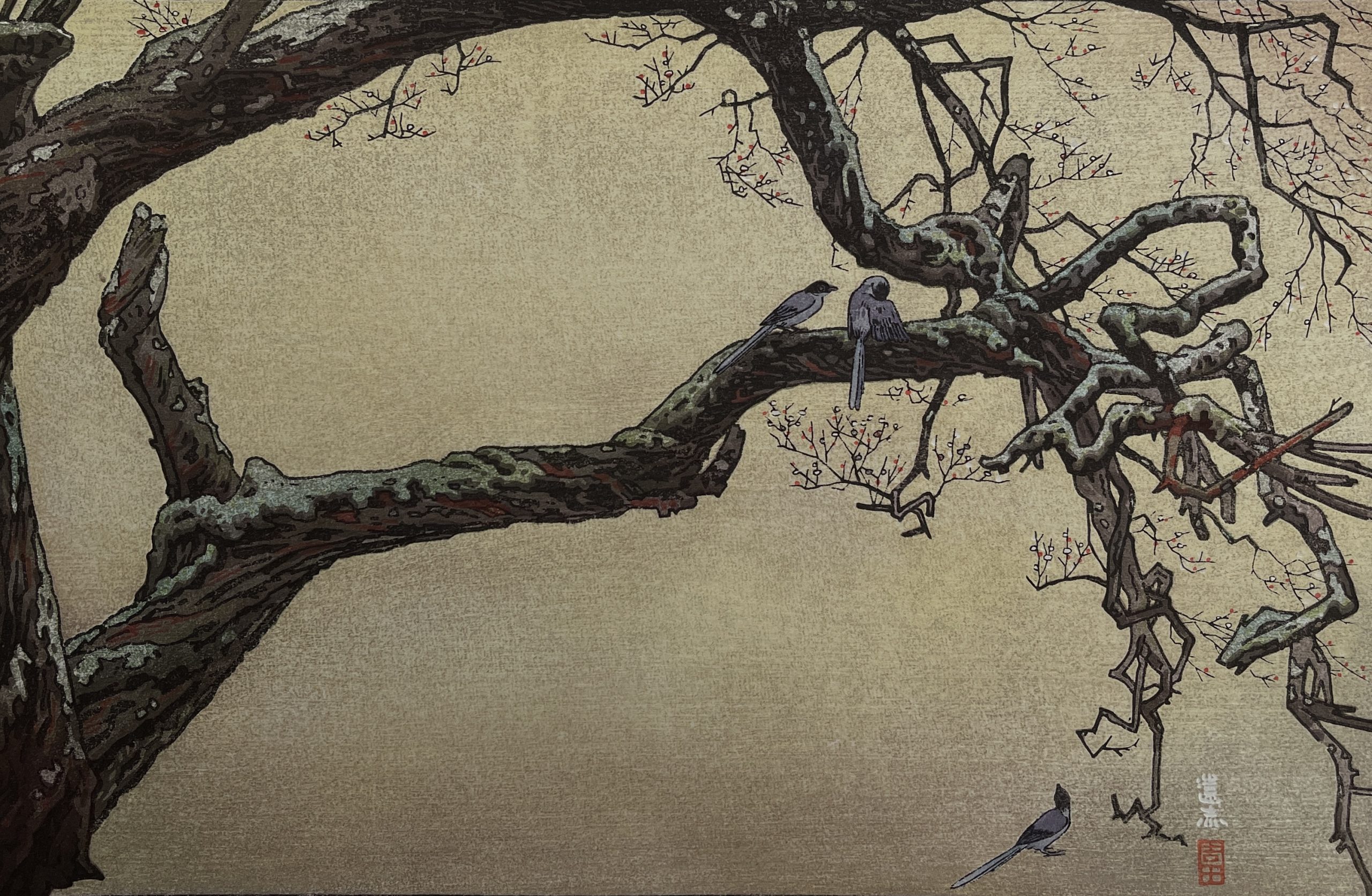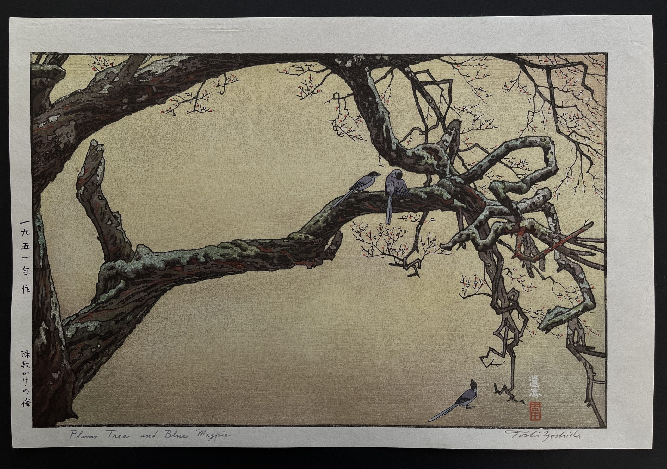 Toshi Yoshida (1911-1995) – Plum Tree & Blue Magpie (Yoshida Toshi – Jyuzu kake no Ume)