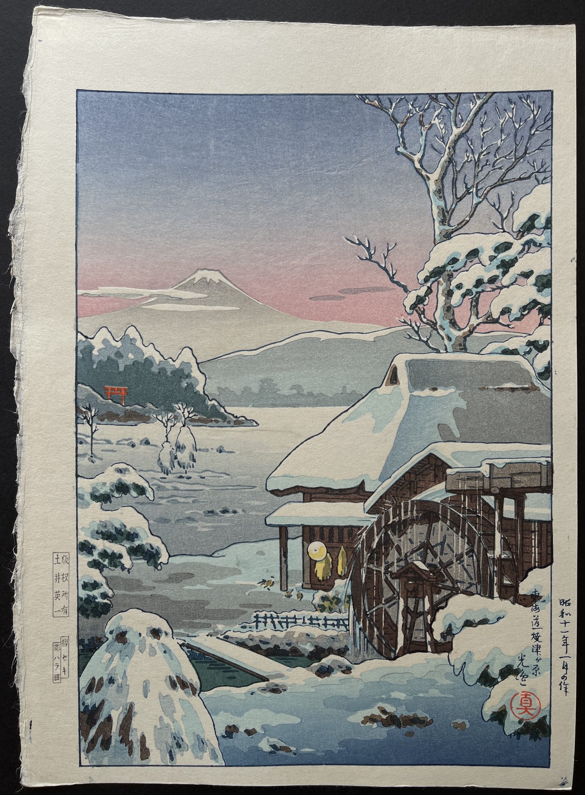 Original woodblock print. The first edition of this design was published in 1937. The current print was printed between 1981 and 1995.